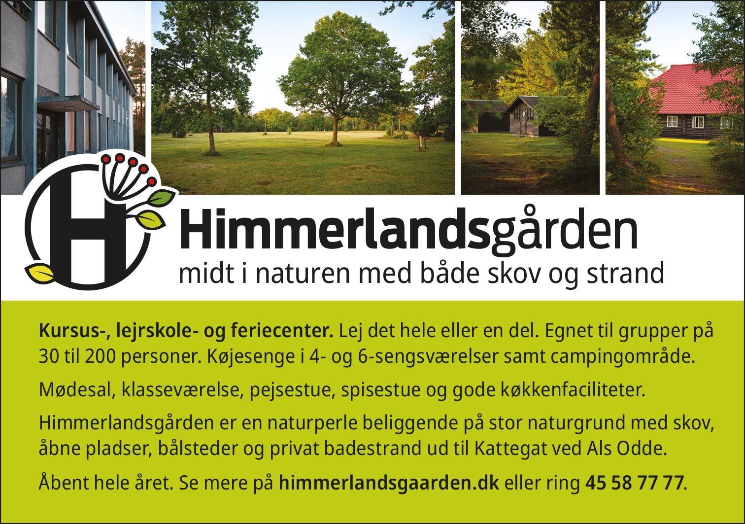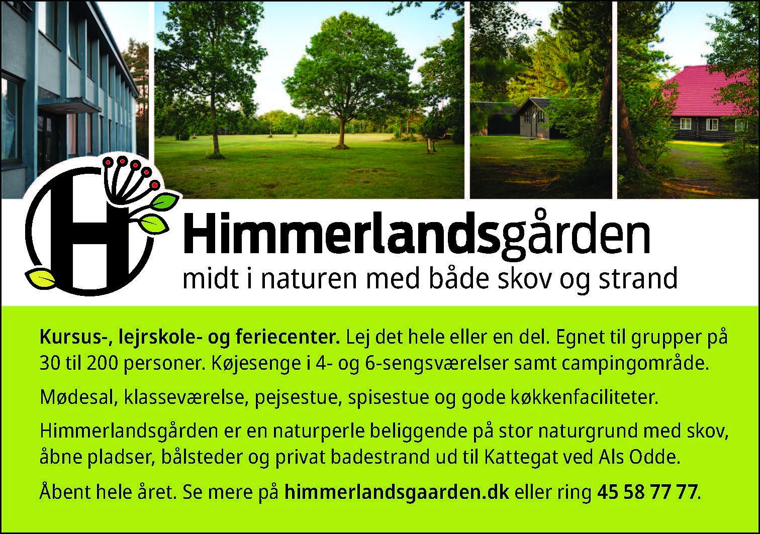 Himmerlandsgården er mange ting. Spejderhytte, kursuscenter, festlokaler, lejrplads, lejrskole, naturcenter, egnet til orienteringsløb, bålplads, madpakkerum, fodboldbane, vandsport – mulighederne er nærmest uendelige. Vi har faciliteter til lidt af hvert – og til mange mennesker!