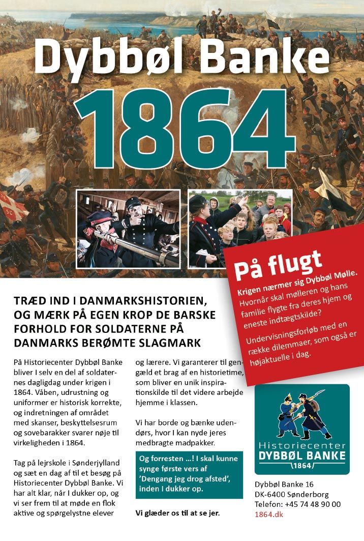 Tag på lejrskole i Sønderjylland og sæt en dag af til et besøg på Historiecenter Dybbøl Banke. Vi har alt klar, når I dukker op, og vi ser frem til at møde en flok aktive og spørgelystne elever og lærere. Vi garanterer til gengæld et brag af en historietime, som bliver en unik inspirationskilde til det videre arbejde hjemme i klassen.