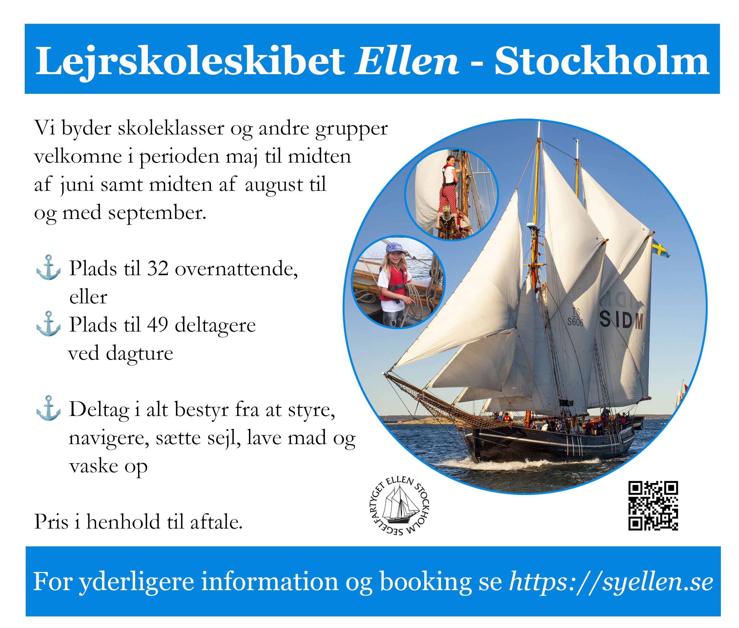Lejrskoleskibet Ellen, bygget på Thurø i det Sydfynske Øhav i 1898 som et sejlende fragtskib, men nu med hjemmehavn i Stockholm, tilbyder skoleklasser at sejle i Stockholms skærgård. Du får prøvet at styre, navigere, sætte sejl,holde udkig, gøre rent, lave mad og vaske op.