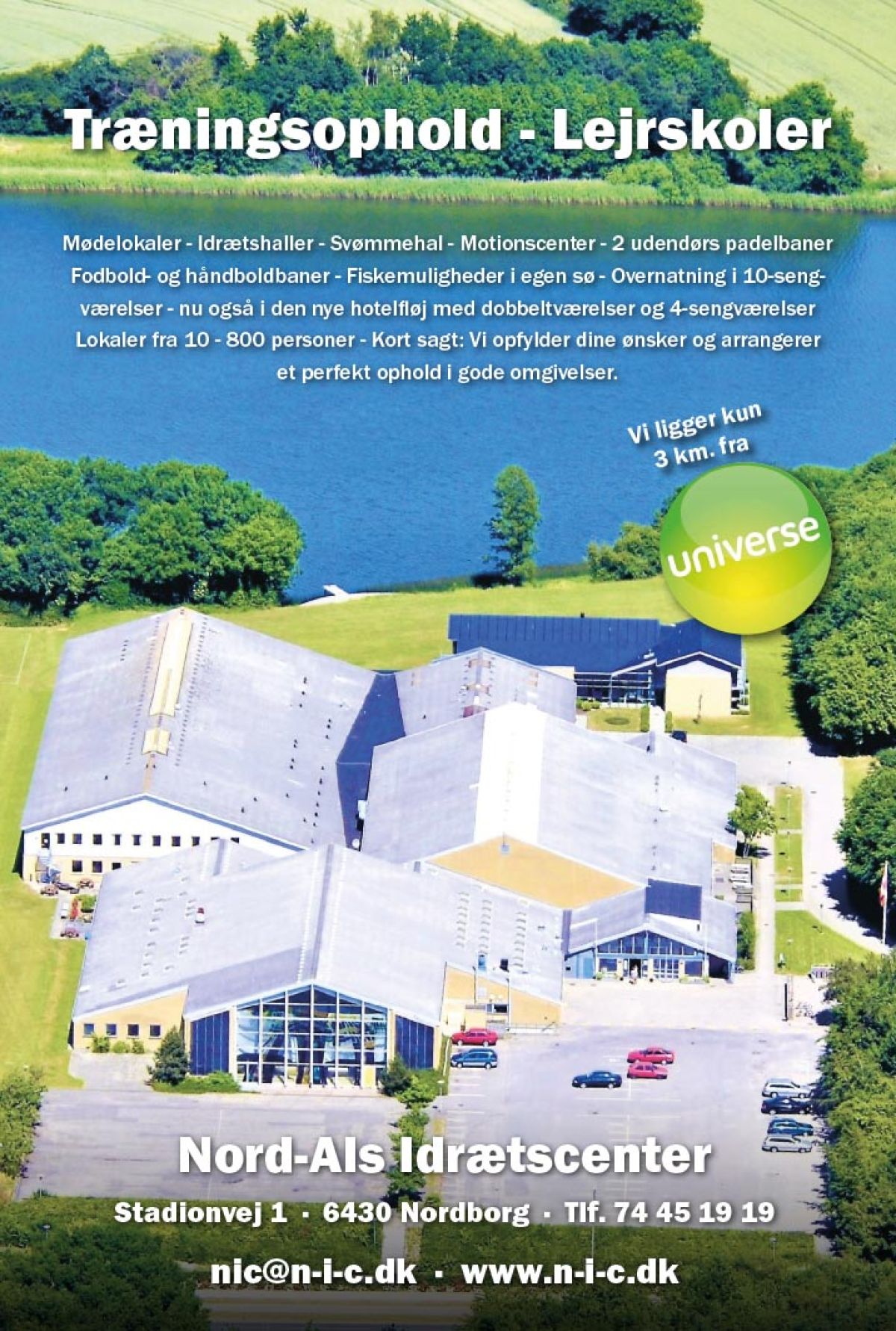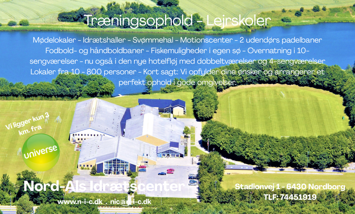 Nord-Als Idrætscenter er smukt beliggende ved Nordborg Sø, nabo til golfbanen og med meget kort afstand til forlystelsesparken Universe på Als i Sønderjylland.